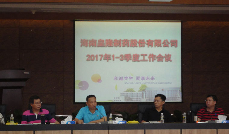 在這個寓意希望和豐收的季節里,海南皇隆制藥股份有限公司2017年前三季度工作報告分析會于14日在公司二樓大會議室召開,會議由陳益智總經理主持,部門負責人及以上人員出席會議。