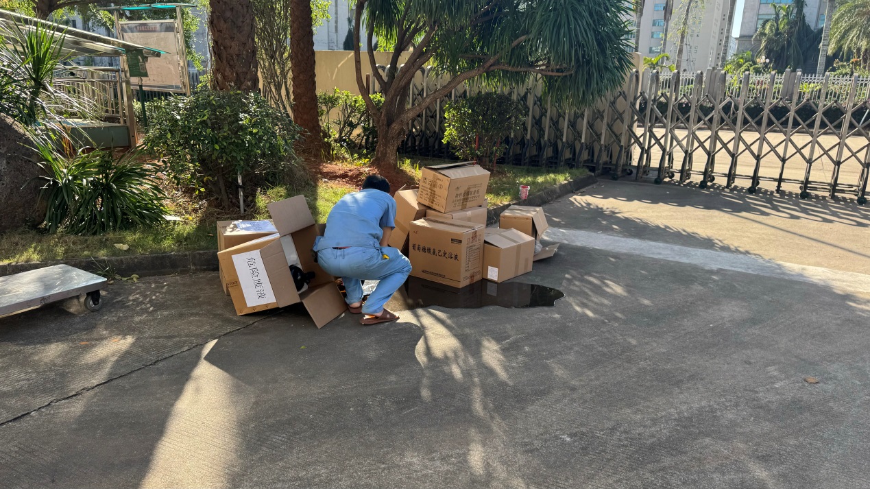 | 運(yùn)輸中,實(shí)驗(yàn)室危險(xiǎn)廢液不慎被碰倒 |