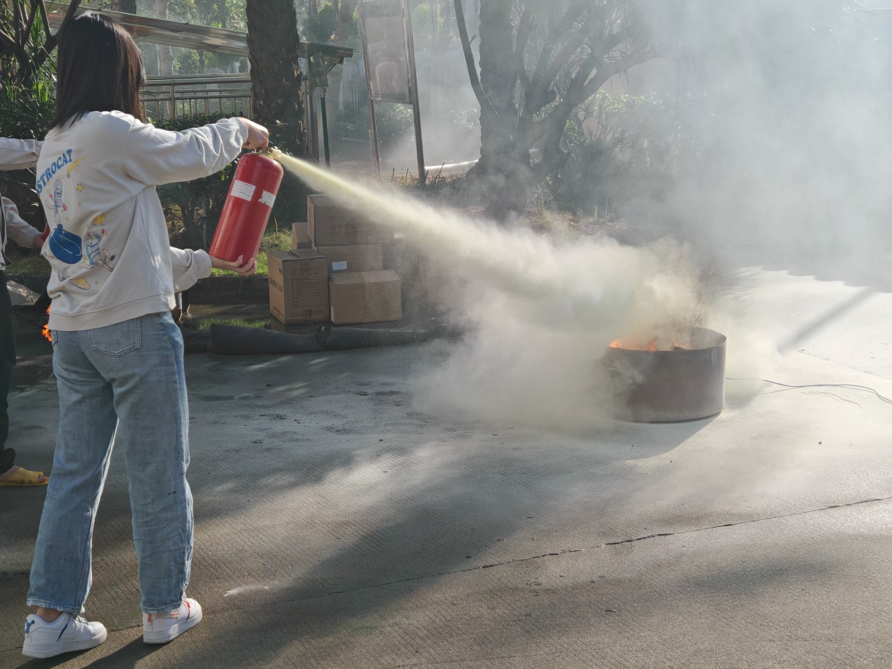 | 員工使用滅火器撲滅著火點(diǎn) |