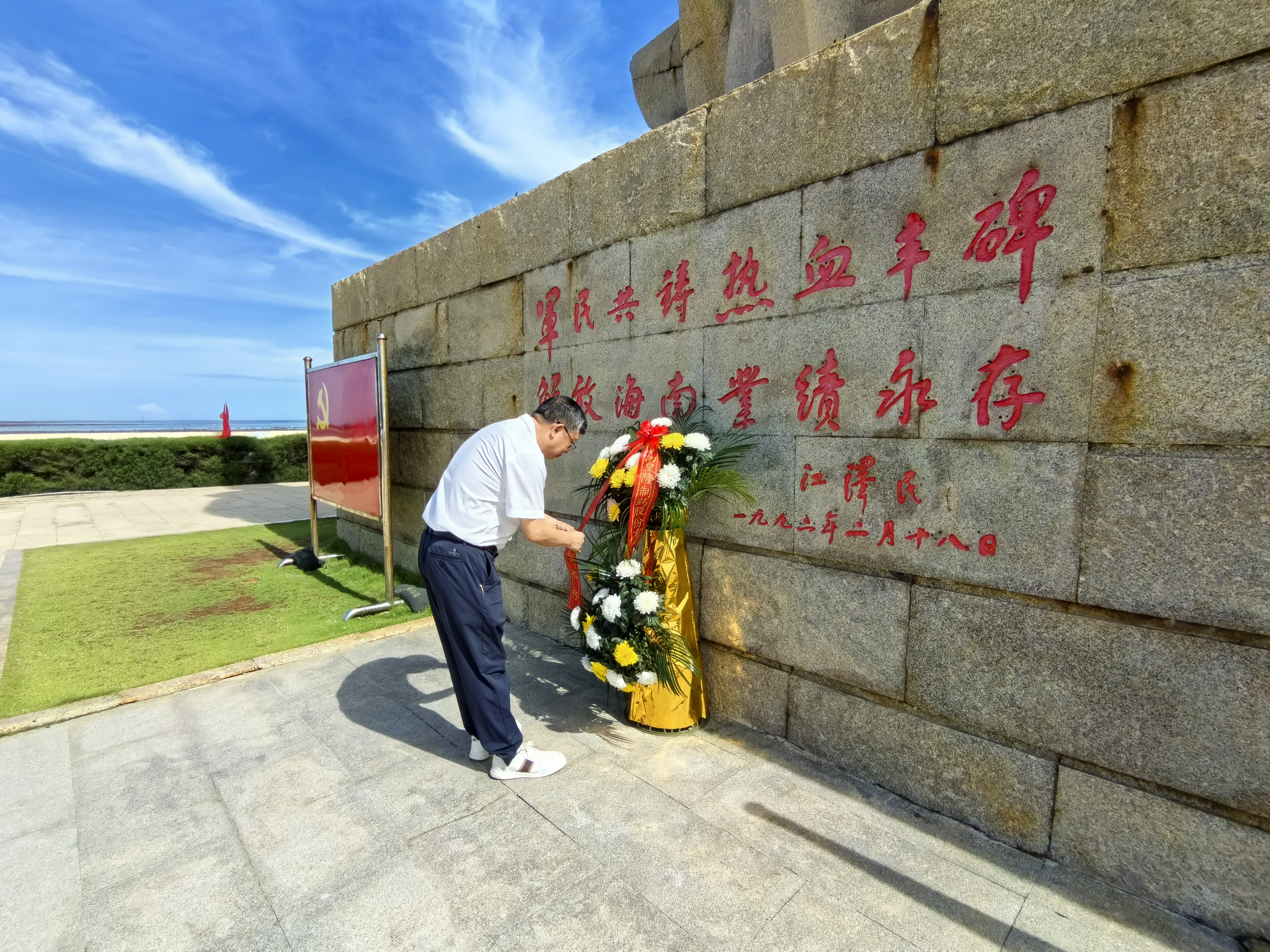 在莊嚴肅穆的“熱血豐碑”前,全體人員整齊列隊,懷著無比崇敬的心情,獻花鞠躬,向為海南解放事業獻出寶貴生命的革命先烈致以最深切的緬懷和最崇高的敬意。